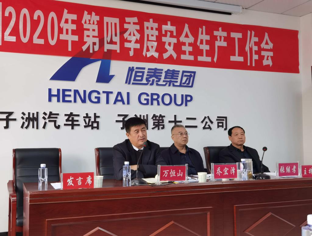 為了確保年底標(biāo)準(zhǔn)化換證工作的順利開展,解決當(dāng)前安全管理工作中存在的問題,分析安全生產(chǎn)形勢(shì),有效遏制道路交通事故的發(fā)生,集團(tuán)公司安委會(huì)在新建子洲客運(yùn)站組織召開了2020年第四季度安全生產(chǎn)工作會(huì)議。集團(tuán)公司董事長(zhǎng)(總經(jīng)理)喬宏澤,常務(wù)副總經(jīng)理萬恒山,副總經(jīng)理張繼孝、趙英富、孟區(qū)旺,安監(jiān)部、客運(yùn)部、汽車后市場(chǎng)、物流部、經(jīng)貿(mào)部負(fù)責(zé)人及相關(guān)人員,集團(tuán)公司所屬各生產(chǎn)經(jīng)營(yíng)單位行政正職,共計(jì)60余人參加了會(huì)議。會(huì)議由張繼孝副總經(jīng)理主持。