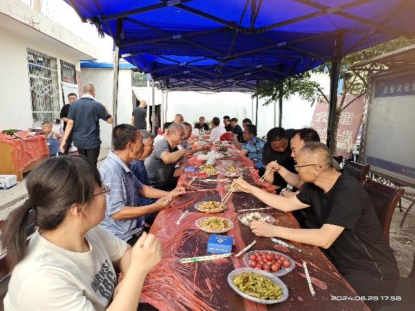 游戲結(jié)束后,溫馨的聚餐時(shí)刻悄然來(lái)臨。縱使烈日炎炎,暑氣逼人,卻絲毫未減大家的熱情。一幅自力更生、愉快勞作的大生產(chǎn)繁忙且歡樂(lè)的畫(huà)面在眼前呈現(xiàn)。有的精心燉制羊肉,有的熟練地包餃子,有的專注地穿肉串,有的細(xì)心地切水果,大家分工明確,緊密配合。琳瑯滿目的美食在辛勤勞作的孕育下豐盛登場(chǎng)。大家圍坐一團(tuán),一邊品嘗著自己的勞動(dòng)成果,一邊愉快地交流分享,現(xiàn)場(chǎng)氛圍輕松又愉悅。