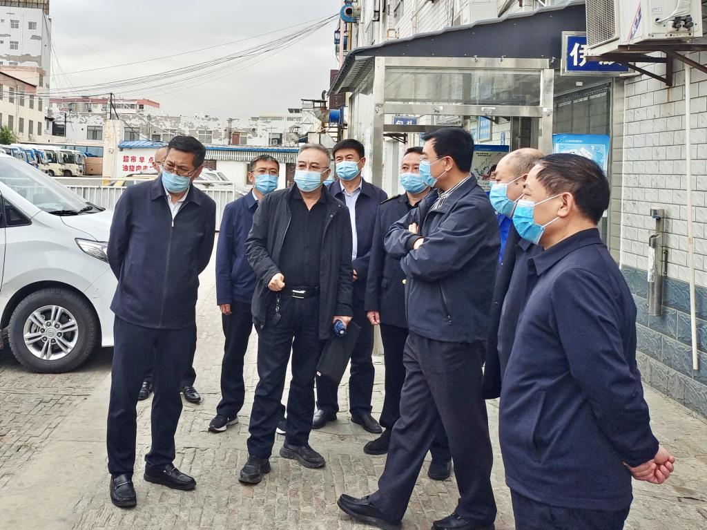 2022年4月27日上午,新任榆林市交通運(yùn)輸局黨組書記、局長柴小平帶領(lǐng)市、區(qū)局屬部門負(fù)責(zé)人,對交通運(yùn)輸“兩站一場”的疫情防控工作進(jìn)行檢查指導(dǎo),集團(tuán)公司董事長喬宏澤、總經(jīng)理萬恒山等陪同檢查。