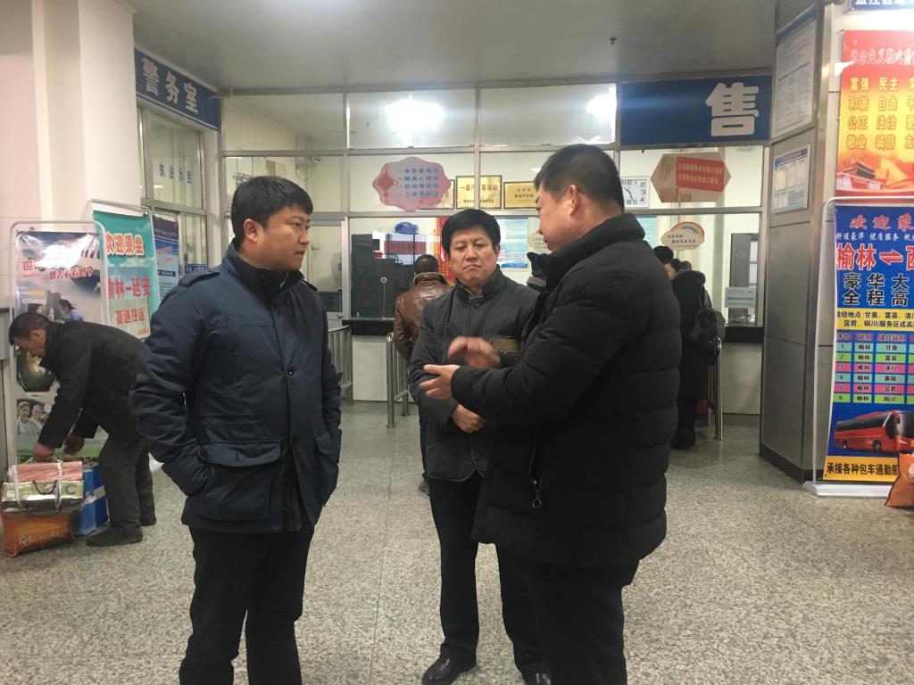1月27日上午,陜西省道路運輸管理局副局長曹鑫一行在榆林市道路運輸管理處處長蘇來鷹等領(lǐng)導(dǎo)的陪同下來集團公司安全檢查。曹局長一行查看了榆林汽車站實名制售票、“三品”檢查等情況,隨后檢查了榆林片區(qū)警示教育活動室和集團公司監(jiān)控中心,通過汽車站聯(lián)網(wǎng)視頻系統(tǒng)抽查了部分汽車站安檢情況并詢問了陜西省第三方平臺監(jiān)測數(shù)據(jù)推送情況。曹局長強調(diào)“春運”即將來臨,公司要嚴(yán)格“三品”檢查和“五不兩確保”安全告知的落實,充分利用省第三方監(jiān)測平臺統(tǒng)計數(shù)據(jù),進一步強化車輛動態(tài)監(jiān)控管理,堅決遏制重特大事故發(fā)生。集團公司安技部部長吳志良、榆林汽車站站長李建國進行跟蹤匯報。(圖文侯勇鵬)