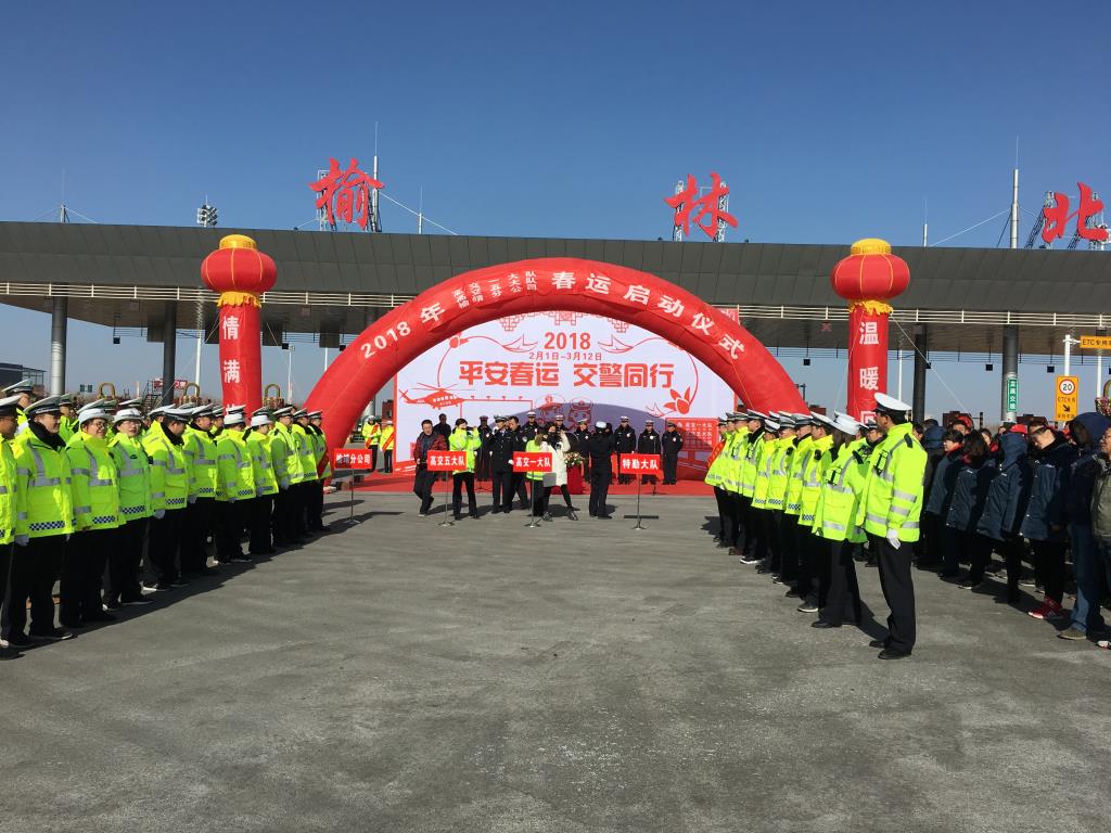 2018年1月31日,榆林市高交一大隊(duì)聯(lián)合高交二大隊(duì)、榆靖分公司在榆林北收費(fèi)站廣場舉行主題為“平安春運(yùn)、交警同行”的2018年春運(yùn)道路交通安全工作啟動儀式。集團(tuán)公司安全技術(shù)管理部、榆林汽車站、恒泰高速客運(yùn)公司、榆西高速客運(yùn)公司、第十六十八客運(yùn)公司領(lǐng)導(dǎo)及駕駛員代表參加了啟動儀式。