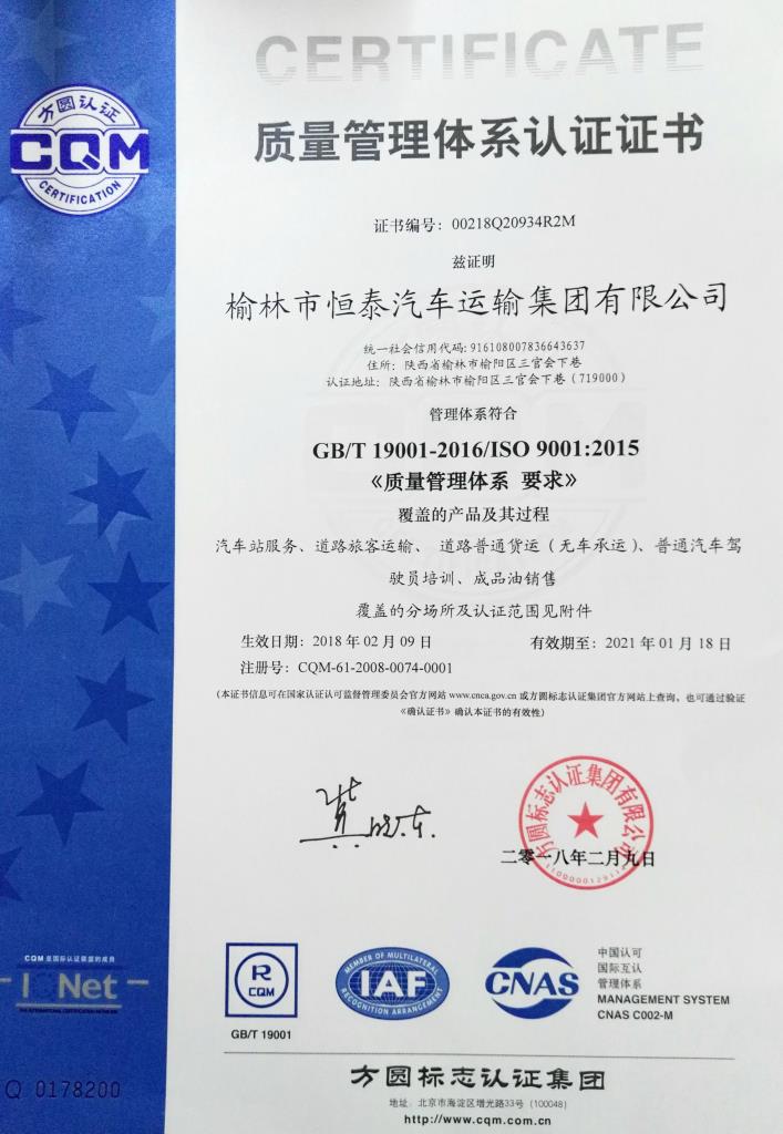 方圓標(biāo)志認(rèn)證集團(tuán)陜西有限公司通過對(duì)我公司為期3天的質(zhì)量管理體系認(rèn)證審核,認(rèn)為集團(tuán)公司新版管理體系文件符合2015版標(biāo)準(zhǔn)要求,體系范圍、方針、目標(biāo)、標(biāo)準(zhǔn)要求等成文信息均已成文;崗位職責(zé)、服務(wù)標(biāo)準(zhǔn)、服務(wù)規(guī)范、安全操作規(guī)程、管理制度等文件明確;記錄控制程序完整有效;總體文件齊全、適宜。體系策劃覆蓋了標(biāo)準(zhǔn)要求,具有組織的特點(diǎn),基本滿足質(zhì)量管理控制要求,體系文件具有充分性、有效性和適宜性。