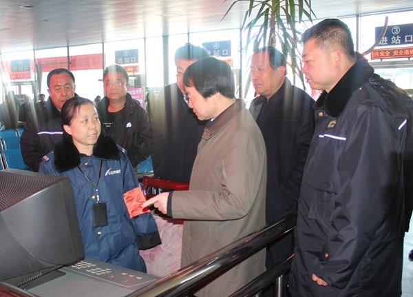 1月28日8時(shí)30分,榆林市副市長(zhǎng)張勝利帶領(lǐng)市政府辦、市交通、消防等部門(mén)負(fù)責(zé)人蒞臨我公司進(jìn)行春運(yùn)安全檢查和春節(jié)慰問(wèn)工作,集團(tuán)公司總經(jīng)理王銀、副總經(jīng)理張繼孝、總部相關(guān)部門(mén)及榆林汽車(chē)站負(fù)責(zé)人陪同檢查。